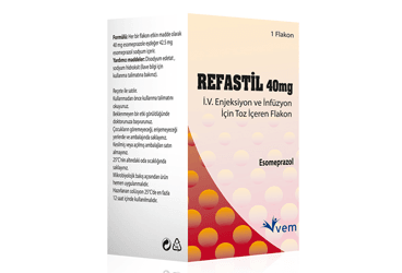 REFASTİL, esomeprazol içermektedir ve “proton pompası inhibitörü” olarak bilinen ilaçlardan biridir. Midenizdeki asit oluşumunu azaltır. REFASTİL, 40 mg esomeprazol toz içeren 5 mL kapasiteli 1 adet renksiz cam flakonda kullanıma sunulmaktadır.